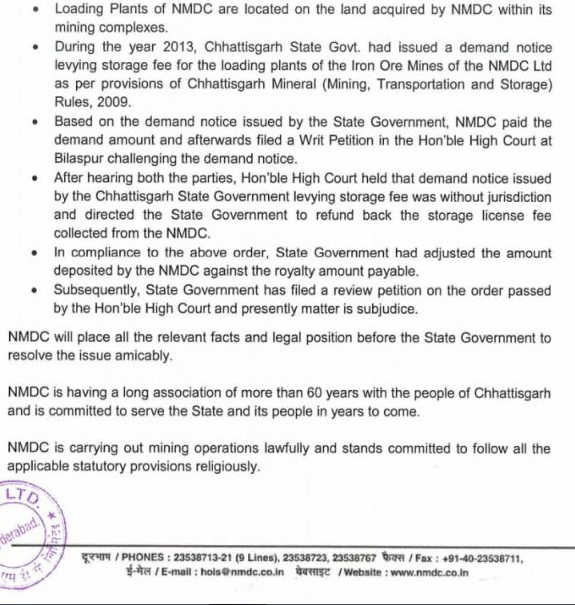 एनएमडीसी में इसके बाद हड़कंप मच गया, बिना अनुमति लीज एरिया से बाहर के हिस्से का उपयोग भी किया जा रहा है।छापा मारने के बाद अधिकारियों ने लोडिंग प्लांट को बंद करवा दिया और इसके लिए निर्देश भी जारी किया है।